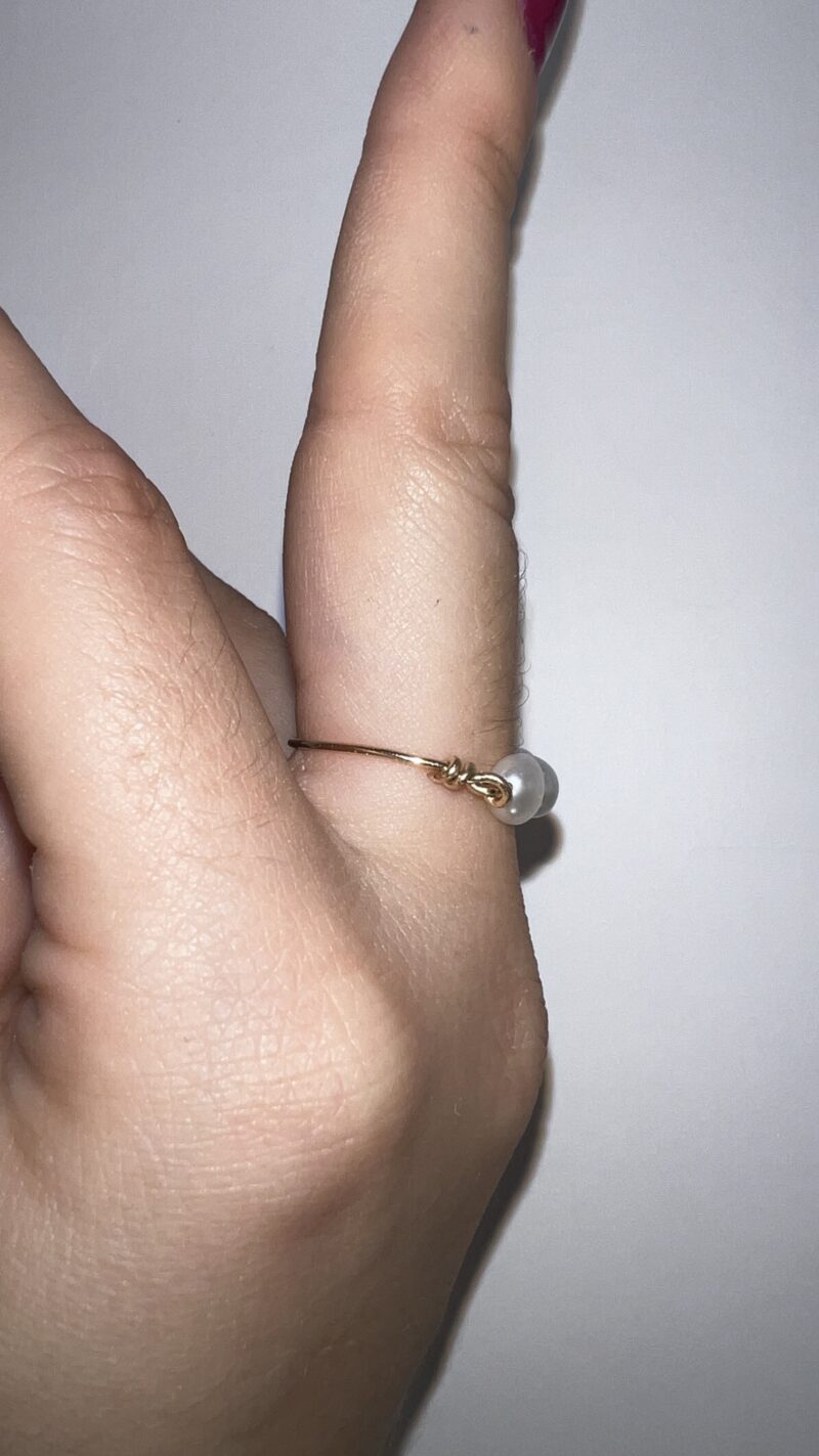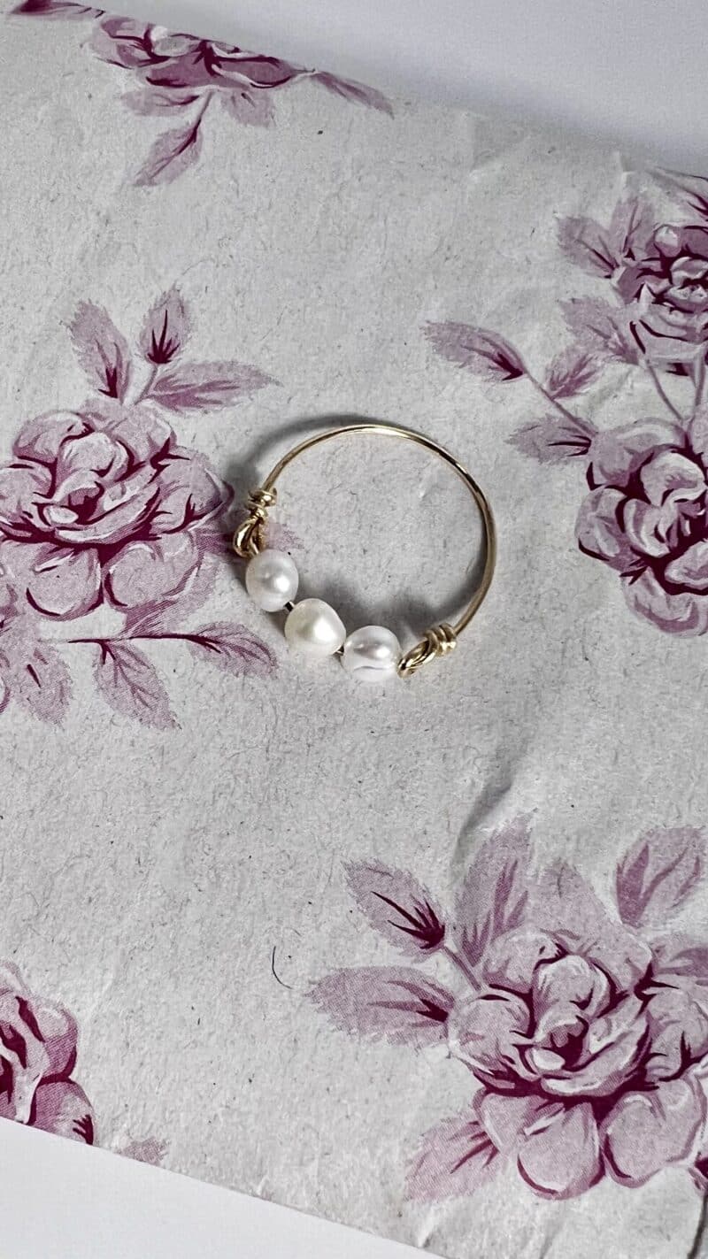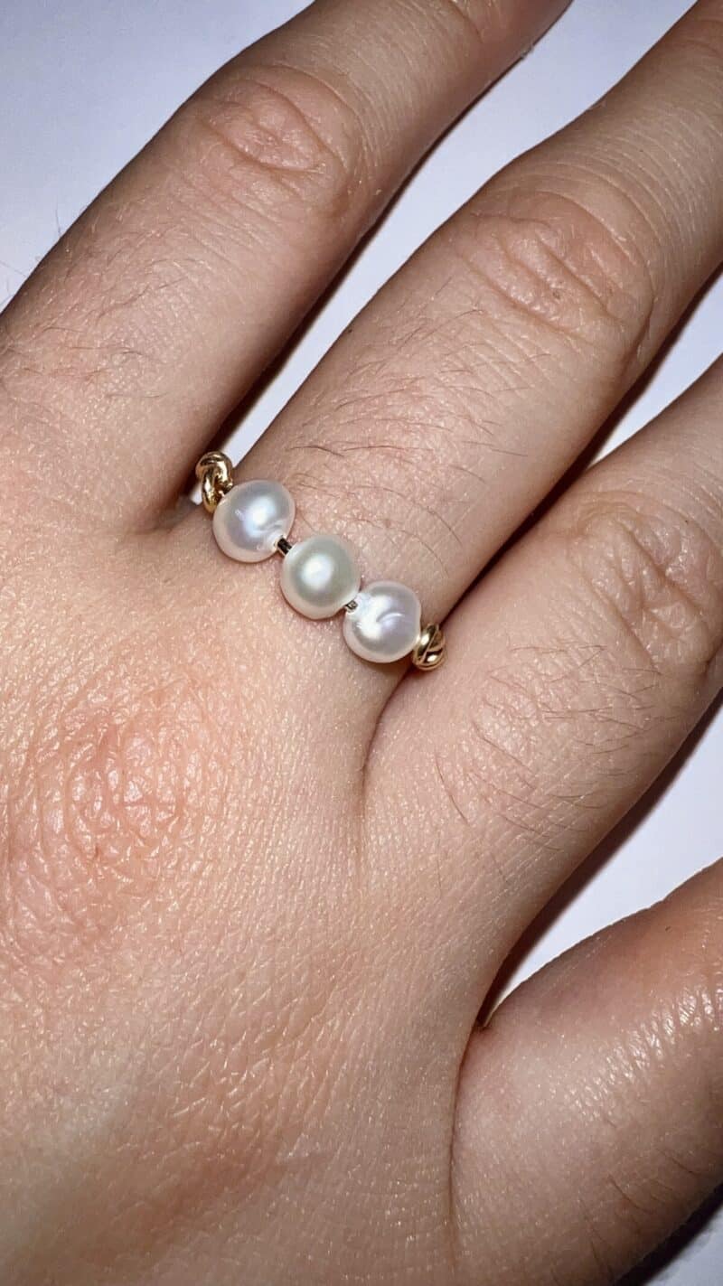 Anillo con perlas naturales hecho artesanalmente en nuestro taller en España con alambre relleno de oro de 14 quilates.