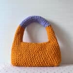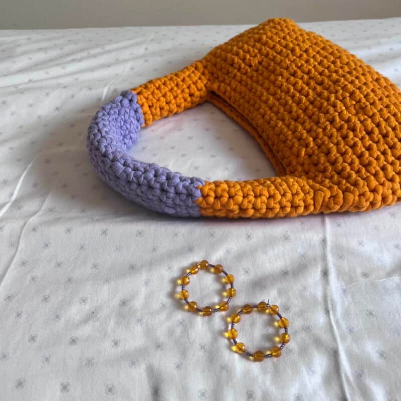 Bolso baguette bicolor con cierre magnético. Última unidad, hecho artesanalmente de crochet en España con materiales deadstock.