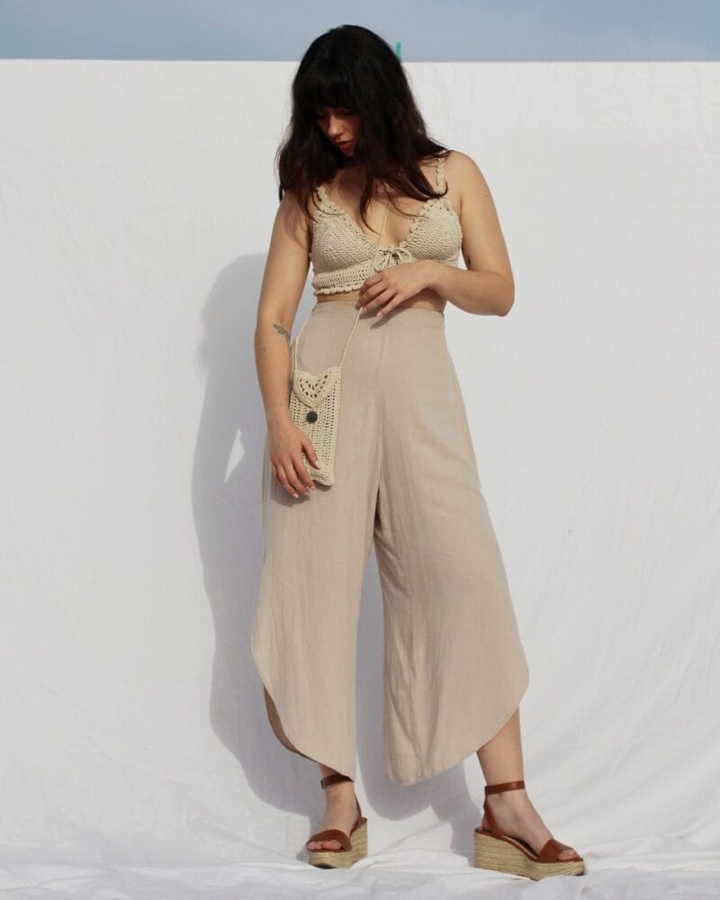 Mini bolso para smartphone y correa larga hecho artesanalmente de crochet en España con algodón 100% rústico.