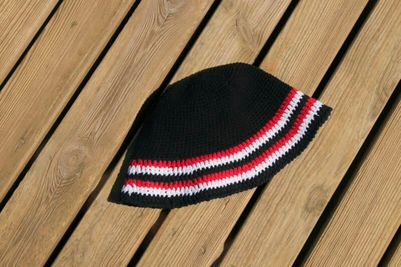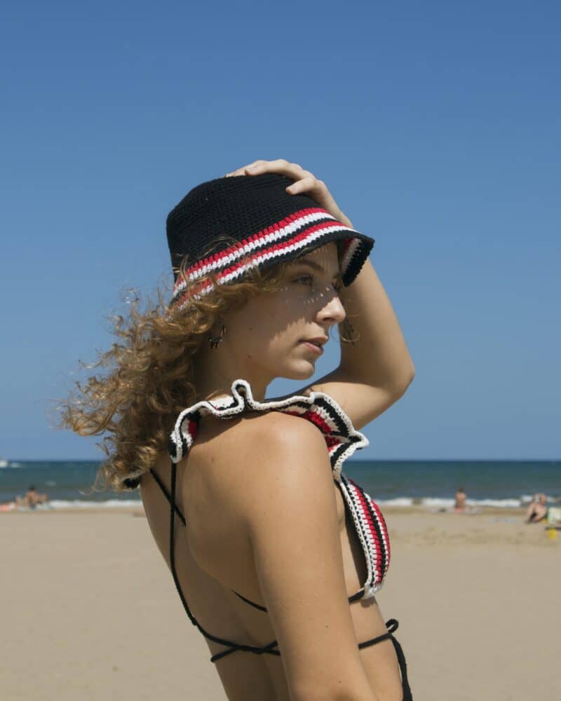 Bucket Hat/ Sombrero de pescador tricolor hecho artesanalmente de crochet en España con 100% algodón libre de sustancias nocivas.