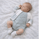 Conjunto de primera puesta de bebé tejido artesanalmente.