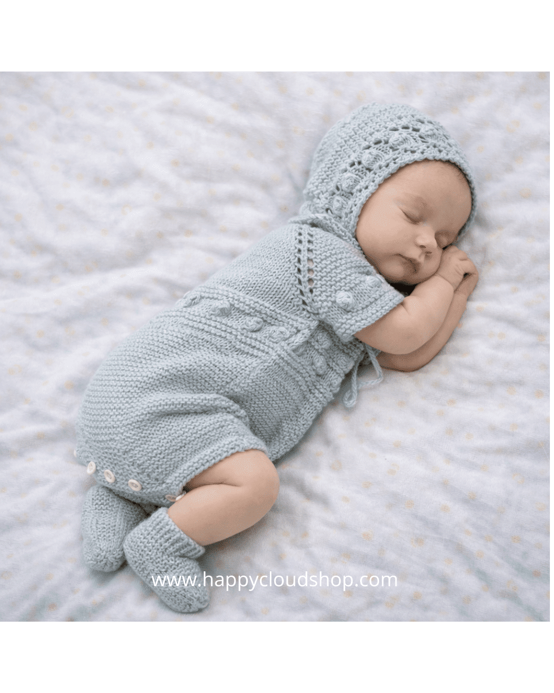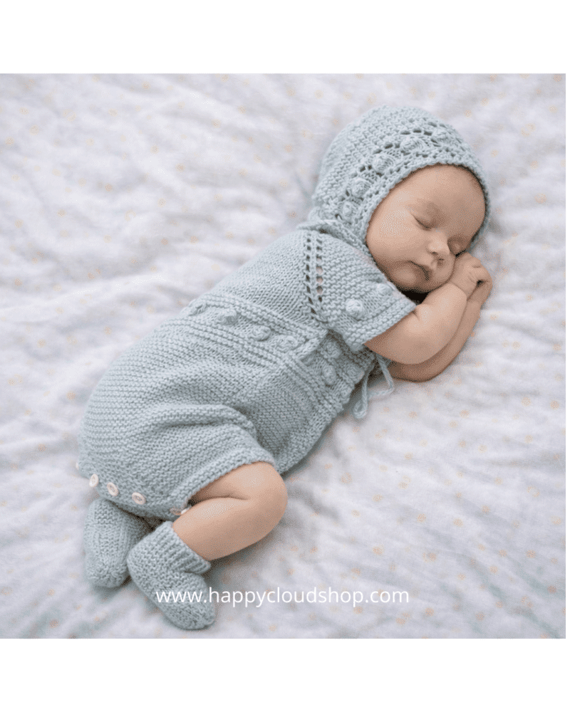 Conjunto de primera puesta de bebé tejido artesanalmente.