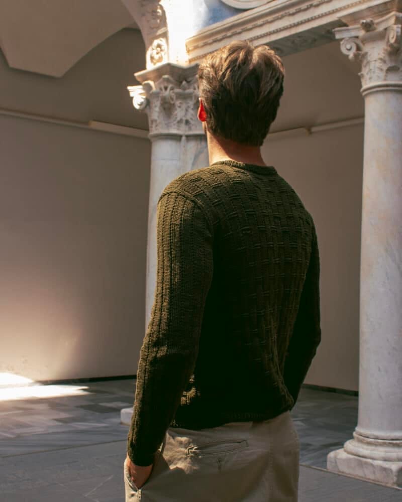 Jersey de punto hecho completamente de forma artesanal en España con 100% algodón de origen sostenible y libre de químicos nocivos (certificado OEKO-Tex standard 100) y nacional.