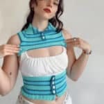 Set de 3 piezas compuesto por mangas, cinturón y top. Hecho artesanalmente de crochet en España con algodón 100% y libre de sustancias nocivas.