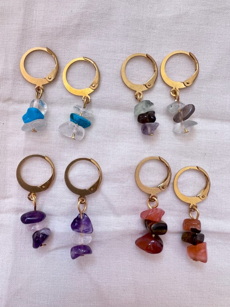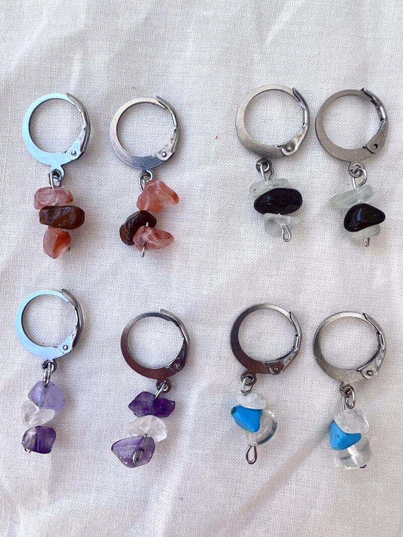 Pendientes de piedras naturales irregulares y acero inoxidable hipoalergénico.