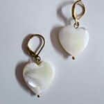 Pendientes de corazón de nácar natural y acero inoxidable hipoalergénico. Hechos artesanalmente en España