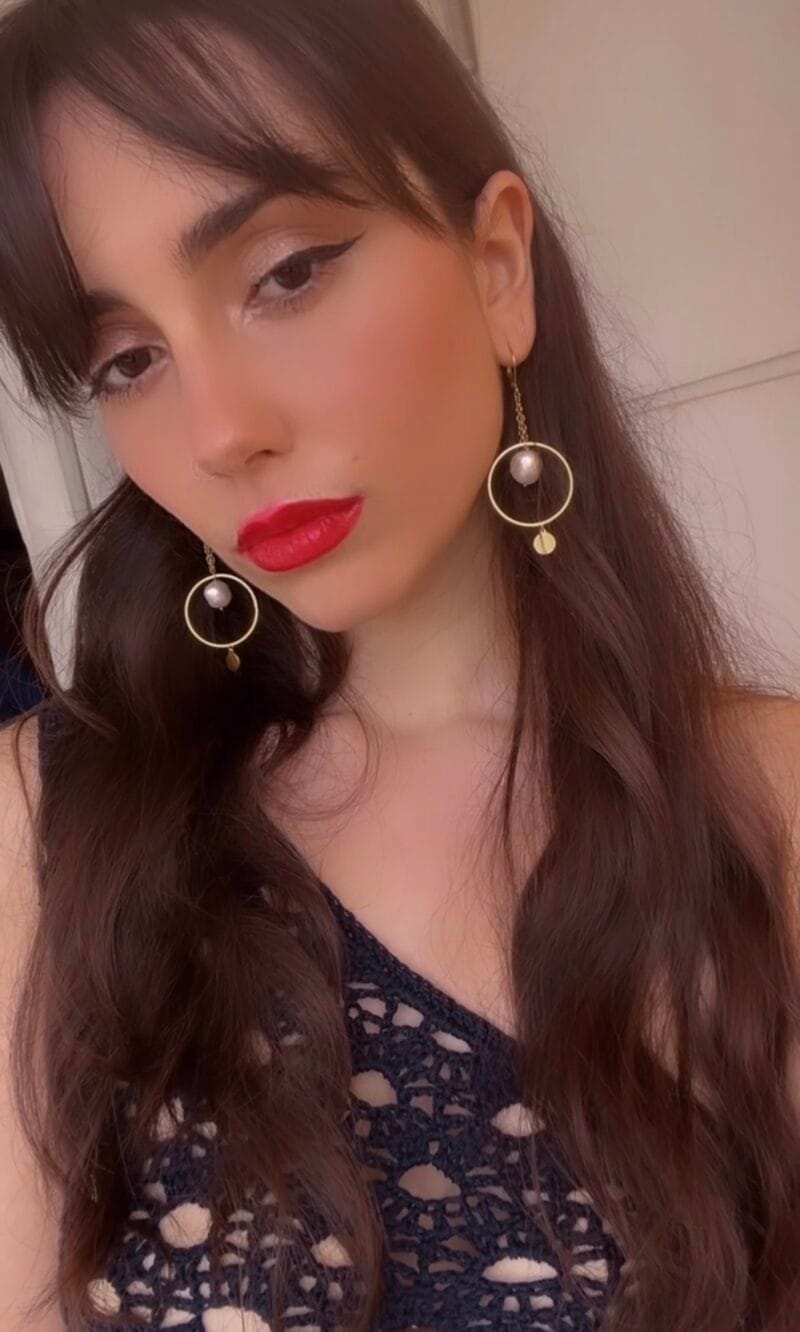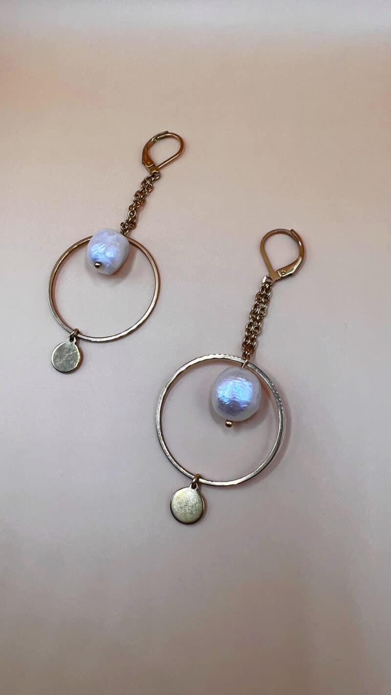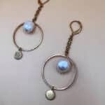 Pendientes largos con perla natural y estructura de acero inoxidable hipoalergénico. Hechos artesanalmente en España