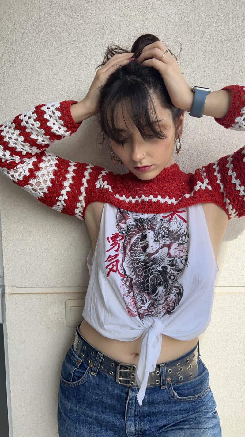Mangas bicolor tejidas con crochet calado con cierre de botón en la parte trasera. Hecho artesanalmente de crochet en España con hilo de 100% algodón con certificado OEKO-TEXT Standard 100 que garantiza que nuestras prendas sean 100% fabricadas bajo estándares de sostenibilidad y libres de sustancias tóxicas y nocivas.