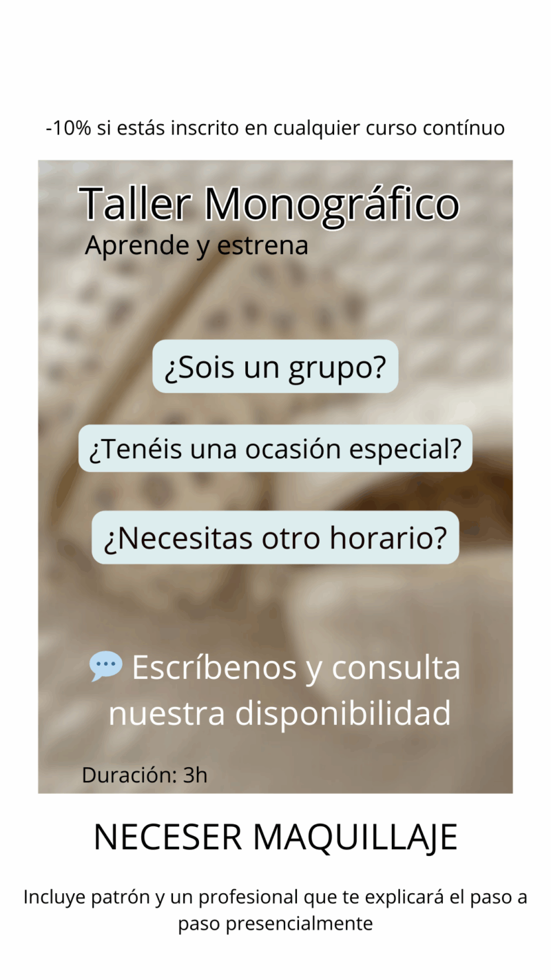 En este taller monográfico de 3 horas aprenderás a coser un neceser de maquillaje con cremallera desde cero, incluso si nunca has cosido antes.